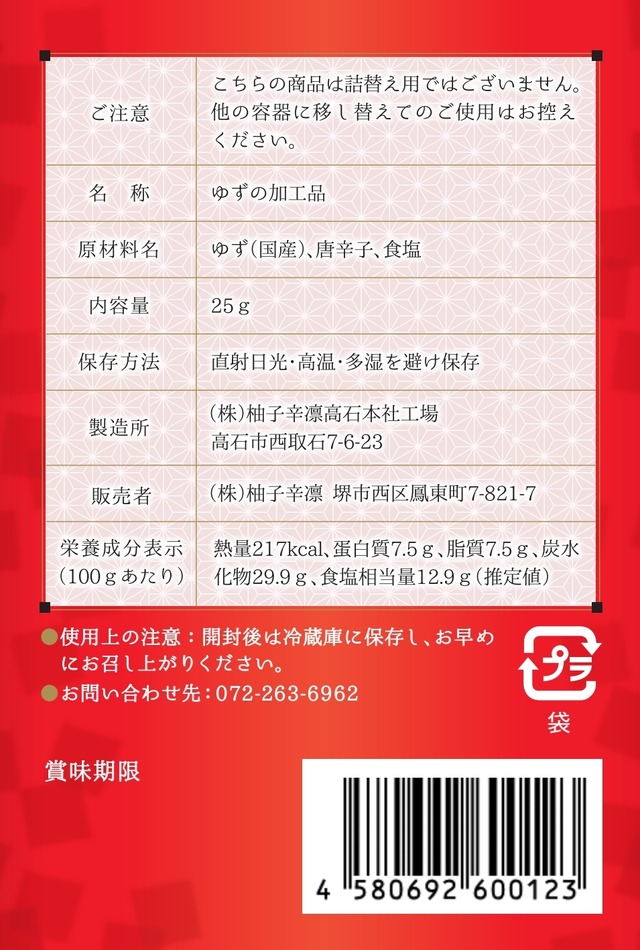 【6個まで送料210円】 ゆずからりんパウチ25g(詰替え用ではございません)